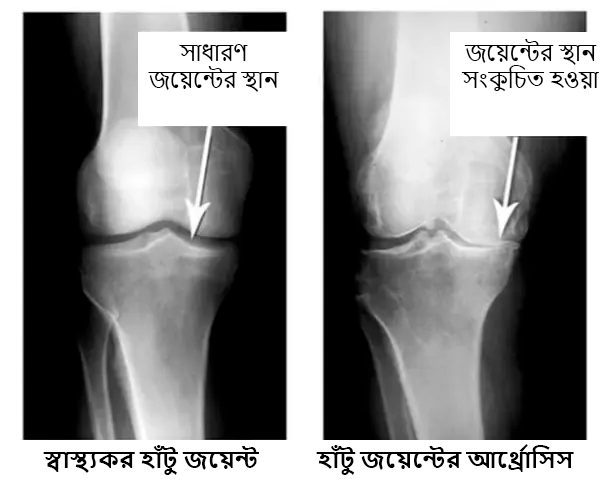 এই ছবিগুলো দেখো। সঠিক ছবিতে, জয়েন্টের জায়গা নেই, হাড়গুলো একে অপরের সাথে ঘষছে, যার ফলে তীব্র ব্যথা হচ্ছে। আর এই প্রক্রিয়া বন্ধ করা খুব কঠিন! কয়েক বছরের মধ্যে, ব্যক্তিটি অক্ষম হয়ে যাবে এবং নিজের যত্ন নিতে পারবে না।