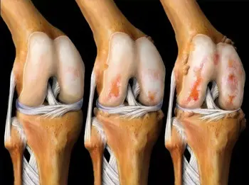 হাঁটুর জয়েন্টের তরুণাস্থি টিস্যুতে আর্থ্রোসিসের প্রভাব।